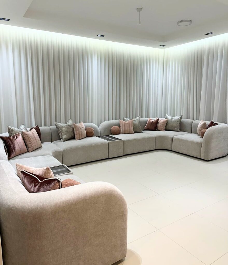 ريم هوم متخصصة في خياطة الستائر حسب الطلب لجميع أحجام وأنماط النوافذ. نقدم ستائر عصرية وكلاسيكية ومعتمة، باستخدام أقمشة عالية الجودة وخياطة احترافية.